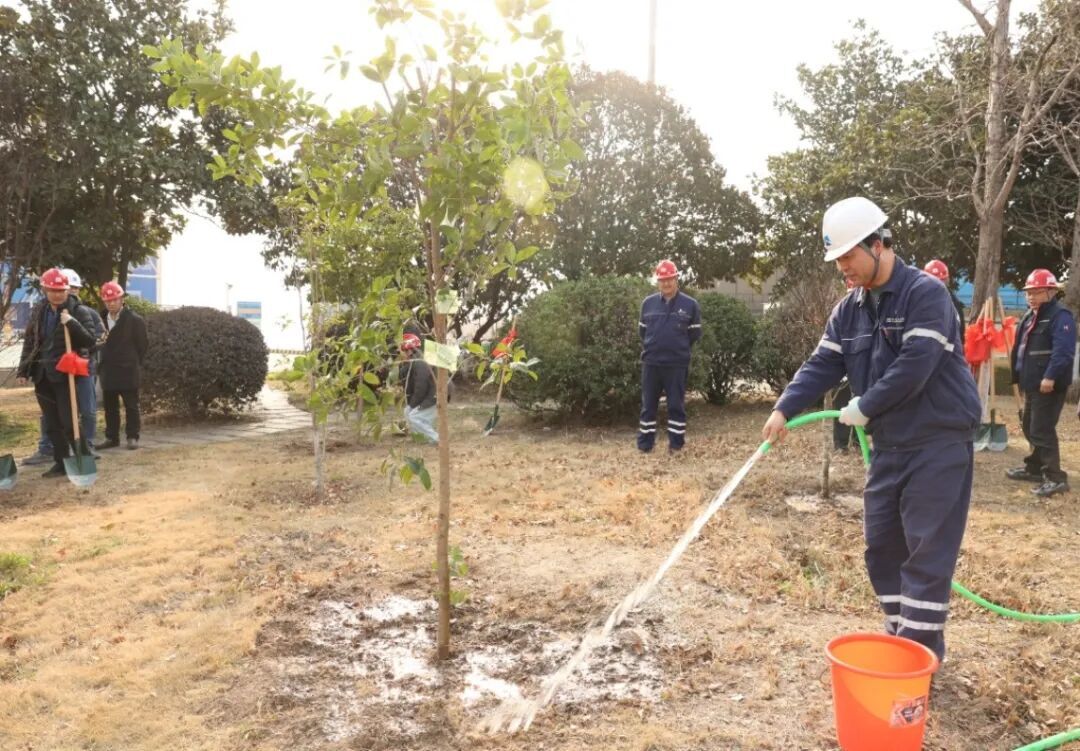 船舶公司在新大洋造船廠區開展植樹活動,揮鍬鏟土、扶苗培土、提水灌溉,一棵棵綠樹迎風挺立。